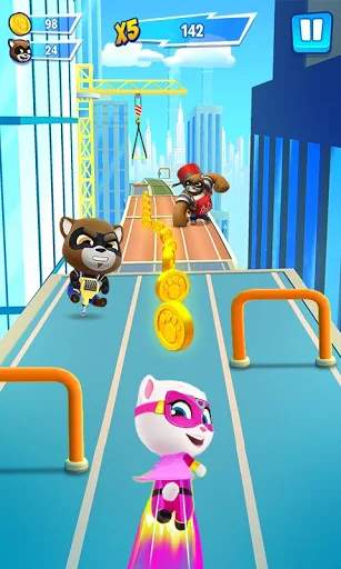 One of the most fun endless runner games! Players join Talking Tom and his heroic friends on a mission to run, get gold and rebuild the world! Playing this new action game will make anyone a true superhero! ★ ANYONE CAN BE A SUPERHERO: Talking Tom, Talking Angela and their super friends all have amazing unique superpowers that they can use while running! Players can also try using their high-tech superhero gadgets! ★ DEFEATING RACCOON GANGS: Besides collecting gold coins and avoiding obstacles, hitting raccoons will earn players some extra rewards! ★ RACCOON BOSS FIGHTS: Players can unlock Talking Angela, Talking Hank, Talking Ben, and Talking Ginger by saving them in action-packed Raccoon Boss fights! ★ RUNNING THROUGH AWESOME WORLDS: Players will fight the raccoons among skyscrapers, alongside tropical surf beaches, through Chinese-inspired villages, and in mysterious desert temples. ★ EXCITING STUNTS: In this fun game, each running world is a unique adventure. Players can dash and leap between rooftops, swing on cranes, and run along cruise ships, but they need to watch out for swimming pools! ★ RESCUING AND REBUILDING: Raccoons are destroying and polluting the world and it’s up to players to drive them away so that you can clean up and rebuild. Once each location is fixed up, it’s time to face the Raccoon Boss. After players defeat him, it’s on to the next running world! What’s it going to be? A surf beach? Or maybe a temple? ★ UNLOCKING SUPERHERO OUTFITS: Players can unlock heroic runner outfits piece by piece and customize each superhero. Dashing! ★ SPECIAL EVENTS: Explore new ways of playing, and complete missions to earn awesome rewards. Players who love Talking Tom Gold Run and other running or superhero games are going to want Talking Tom Hero Dash in their collection too! PLAY FOR FREE!