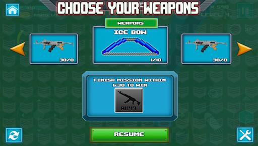 The game comes fully loaded with amazing features! Our new game interface is extremely user friendly, and boasts easy to play touch screen controls that allow you to effortlessly run, jump, sprint, reload, aim, shoot and more! The new menu screen includes map style level select and settings screen. Gain game insight in between maps during loading with tip screens, and begin each game with mission style instructions! Before you begin your first level, you can watch a short video ad in order to earn a power up. You may opt not to watch, but you'll lose out on the advantage. As soon as the game begins, a timer will begin to count down. If you are able to beat the level quickly enough, you will earn a permanent weapon, which can be used in all other levels! If you do not beat the clock, you can still advance through the game, just without the permanent weapon. Fight stronger, more intelligent enemies, who make this game an intense battle of wit, stealth and skill! Enjoy hand-to-hand combat and precision aiming to take down enemies. Collect your blocky weapons and get ready to aim and shoot!!